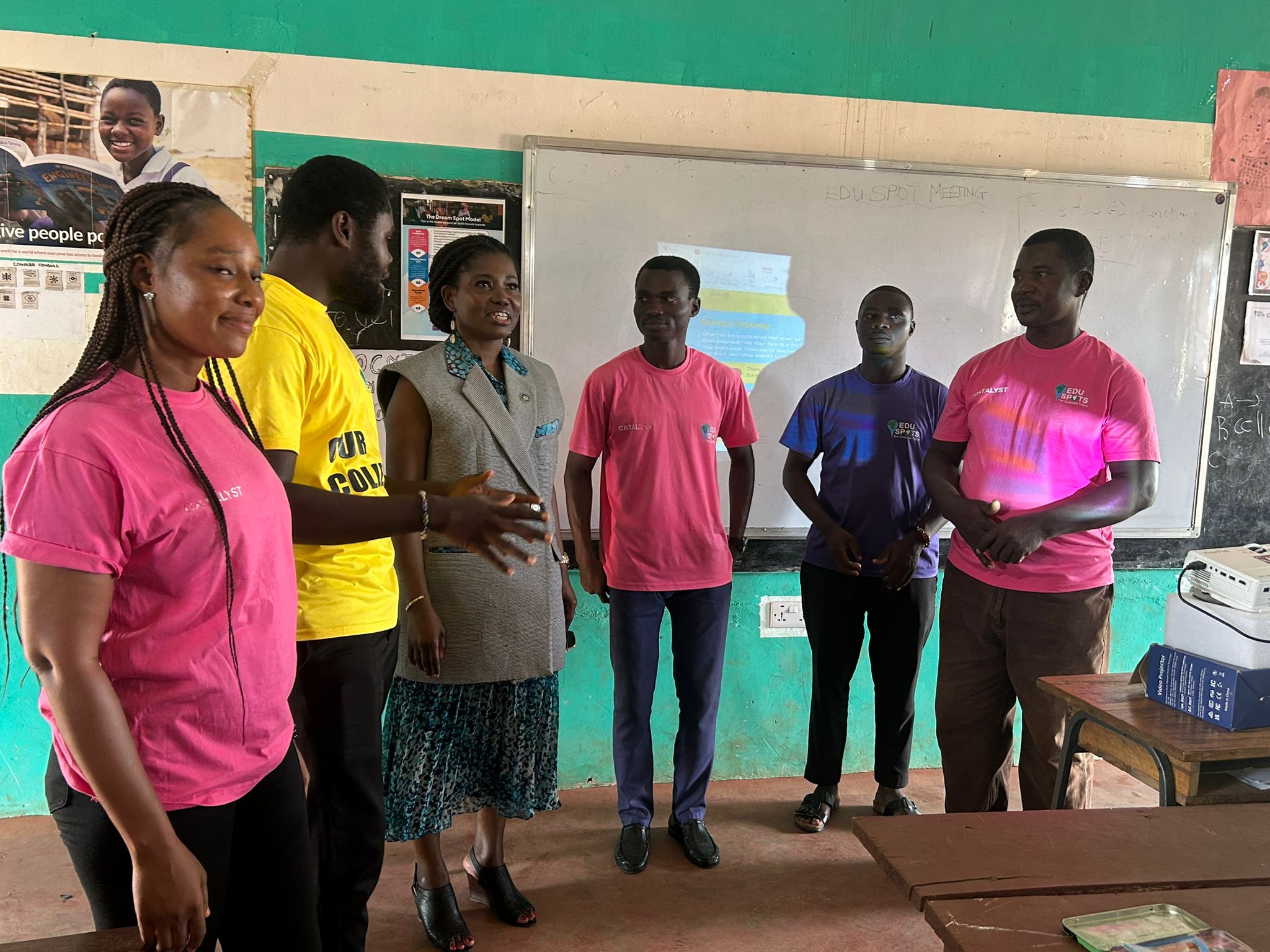 During the visit, she met with staff from EduSpots, including Cat Davison, Prince Ampofo, Isaac Kobby Ayibor, Abdul-Wadud Suleiman, William Donkor, and Elvis Kwofie.