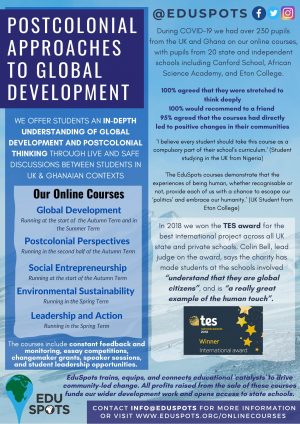 The EduSpots online courses aim to challenge pupils to critically revaluate their assumptions about creating social change through listening to the lived experience of students and community members in different …read more