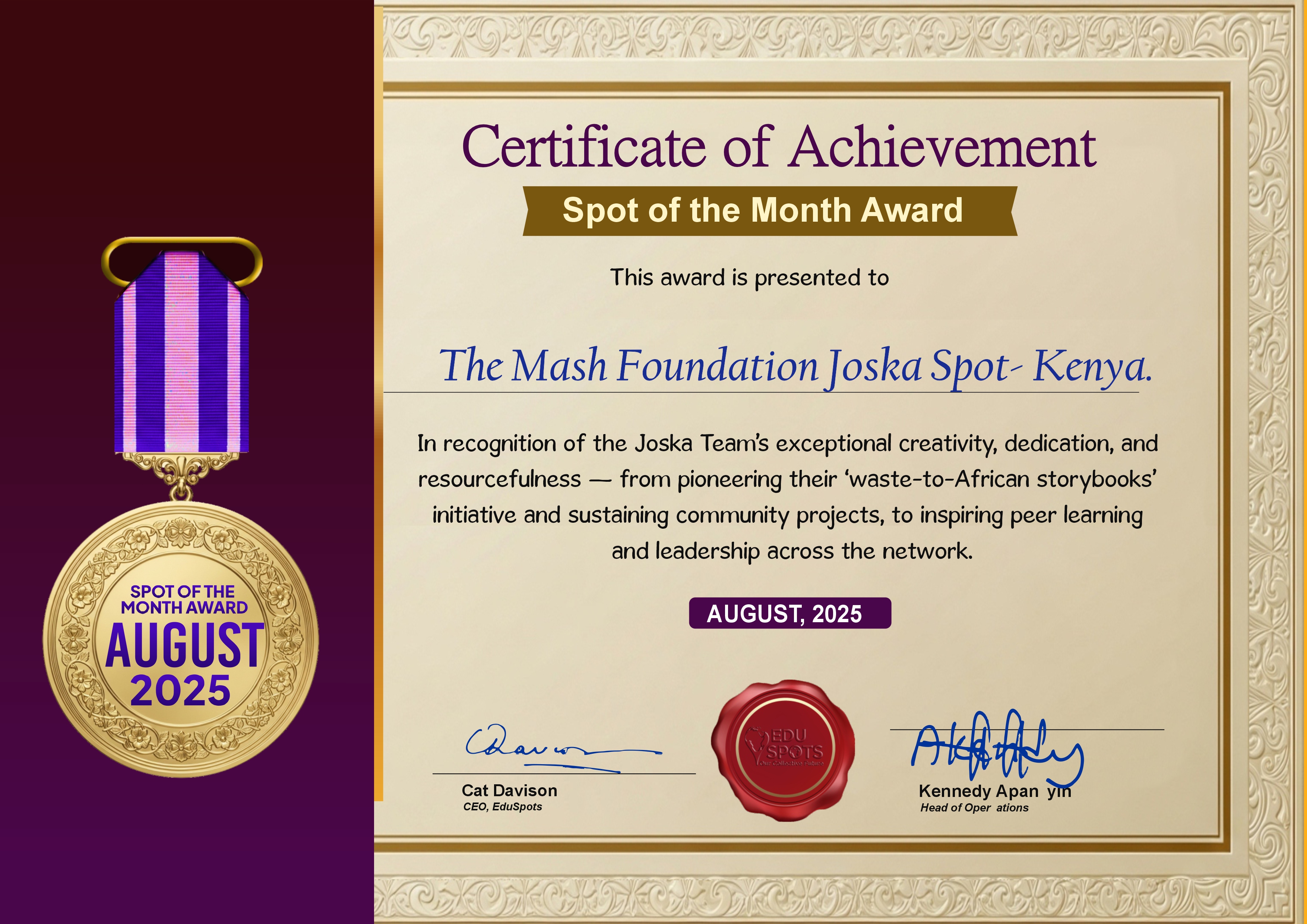 Meet our Spot of the Month of August, The Mash Foundation Joska Spot in Kenya, a community that continues to shine through passion, teamwork, and an unwavering commitment to education and transformation.