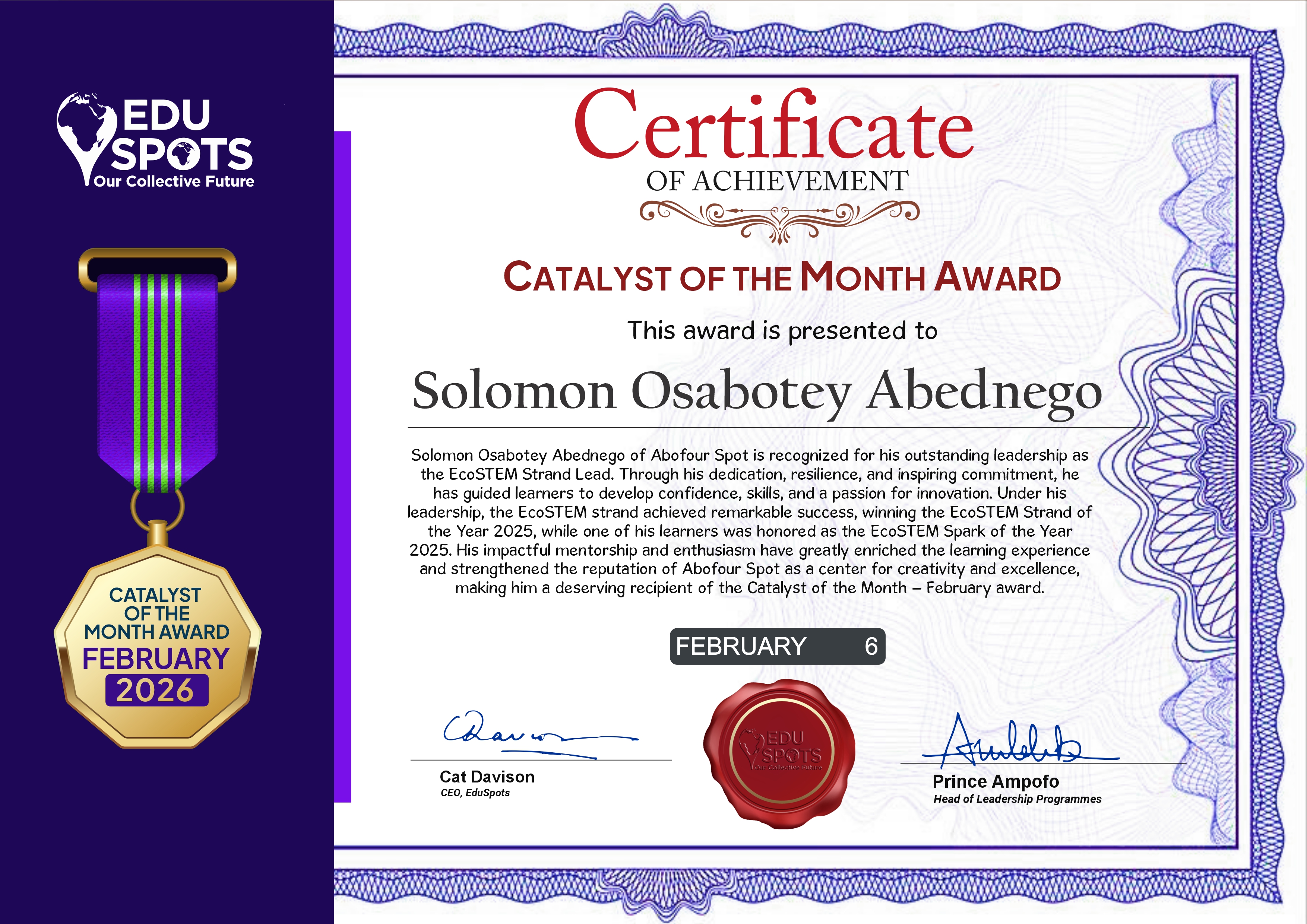 Congratulations, Solomon! Your perseverance and leadership continue to inspire the EduSpots community.