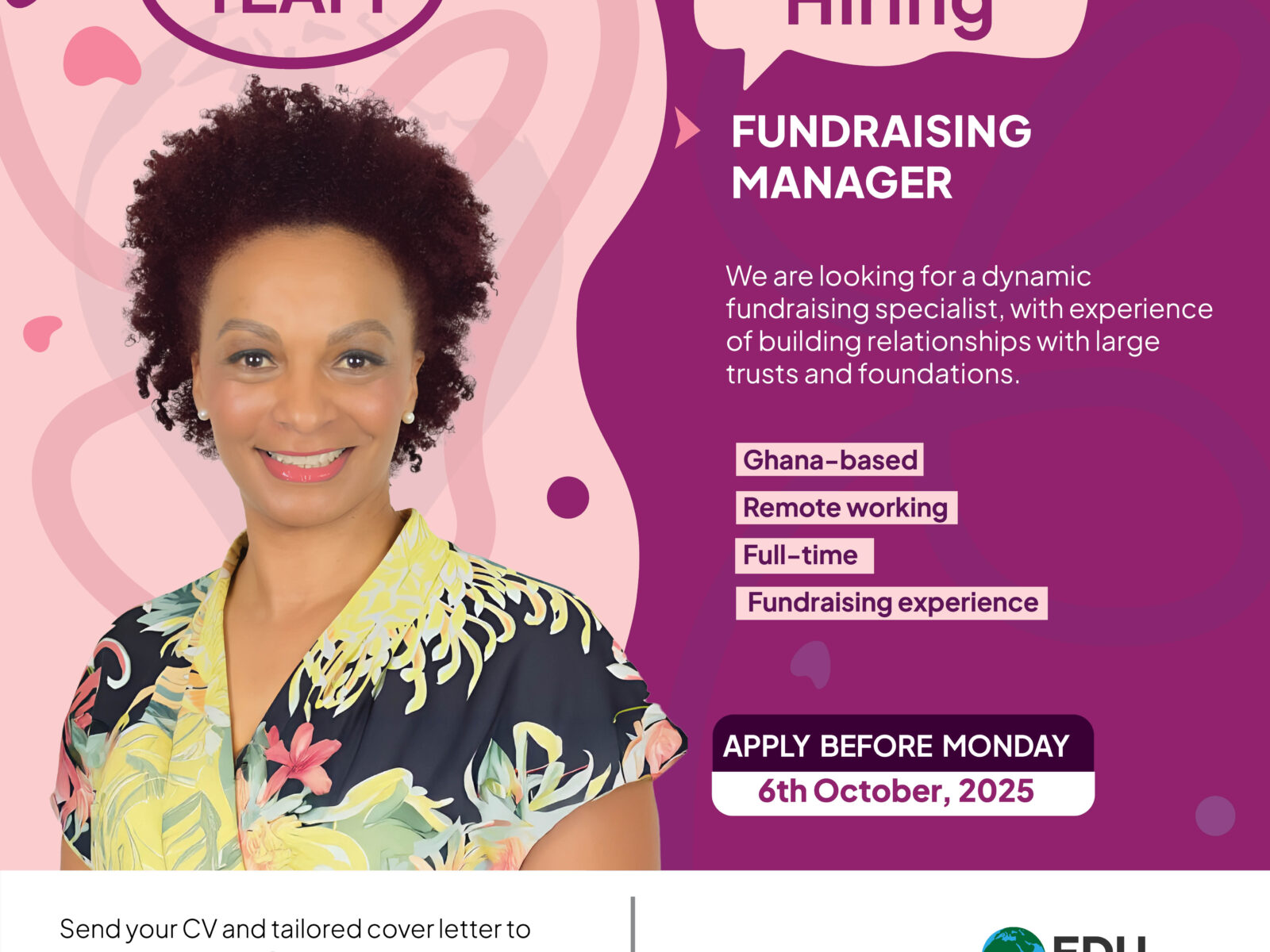 The Fundraising Manager is responsible for driving sustainable income growth for EduSpots in Ghana and internationally. This role combines strategic partnership-building with creative fundraising, delivering measurable results against annual targets. Working closely with the Head of Philanthropy, the Fundraising Manager will embed revenue generation across networks, corporates, communities and individuals, ensuring income streams support EduSpots’ long-term mission and impact.